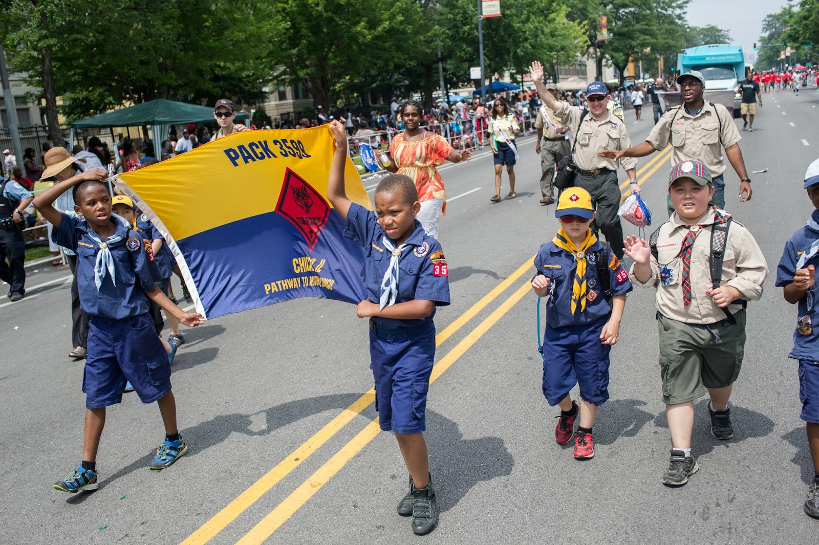 | Cub Scouts from Hyde Park’s Pack 3599 march down Dr. Martin Luther King Jr. Drive |