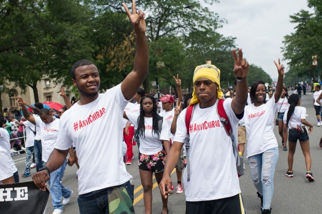 | Members of the #Antichiraq Movement To Take Back The Streets march down Dr. Martin Luther King Jr. Drive |