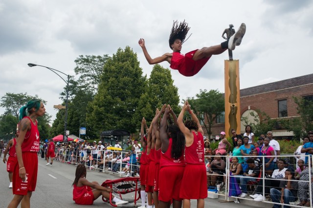 | Members of the Jesse White Tumbling Team perform |
